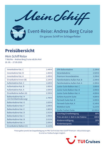 „Die Sehnsucht nach dem Meer hat mich nie mehr losgelassen. 2026 stechen wir wieder mit der Mein Schiff Relax in See. Lasst uns das Leben feiern - ich freue mich riesig auf Euch!“, so Andrea Berg.